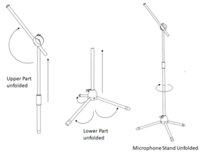 Mikrofonstativet er enkelt å montere uten verktøy, alle deler kan skrus sammen for hånd.