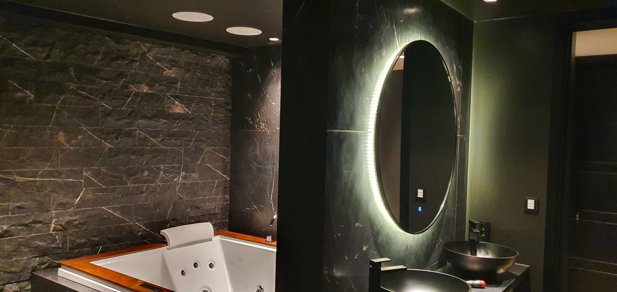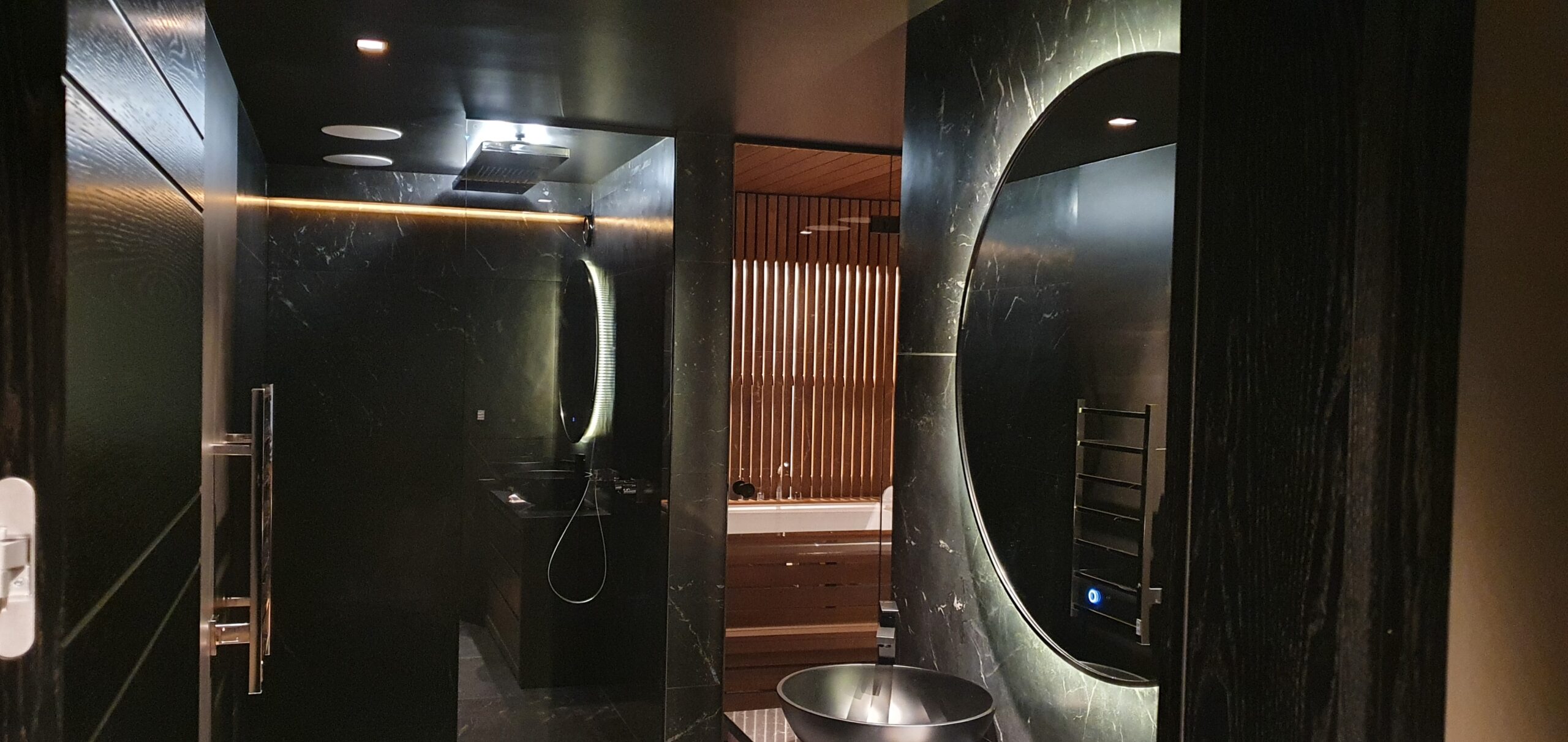 Diverse baderom prosjekter"Forvandle badet ditt til et spa-lignende tilfluktssted med integrert lyd. Tenk deg å slappe av i et varmt bad, omgitt av de beroligende lydene fra naturen eller favorittmusikken din. Med integrert lyd på badet ditt er mulighetene uendelige....