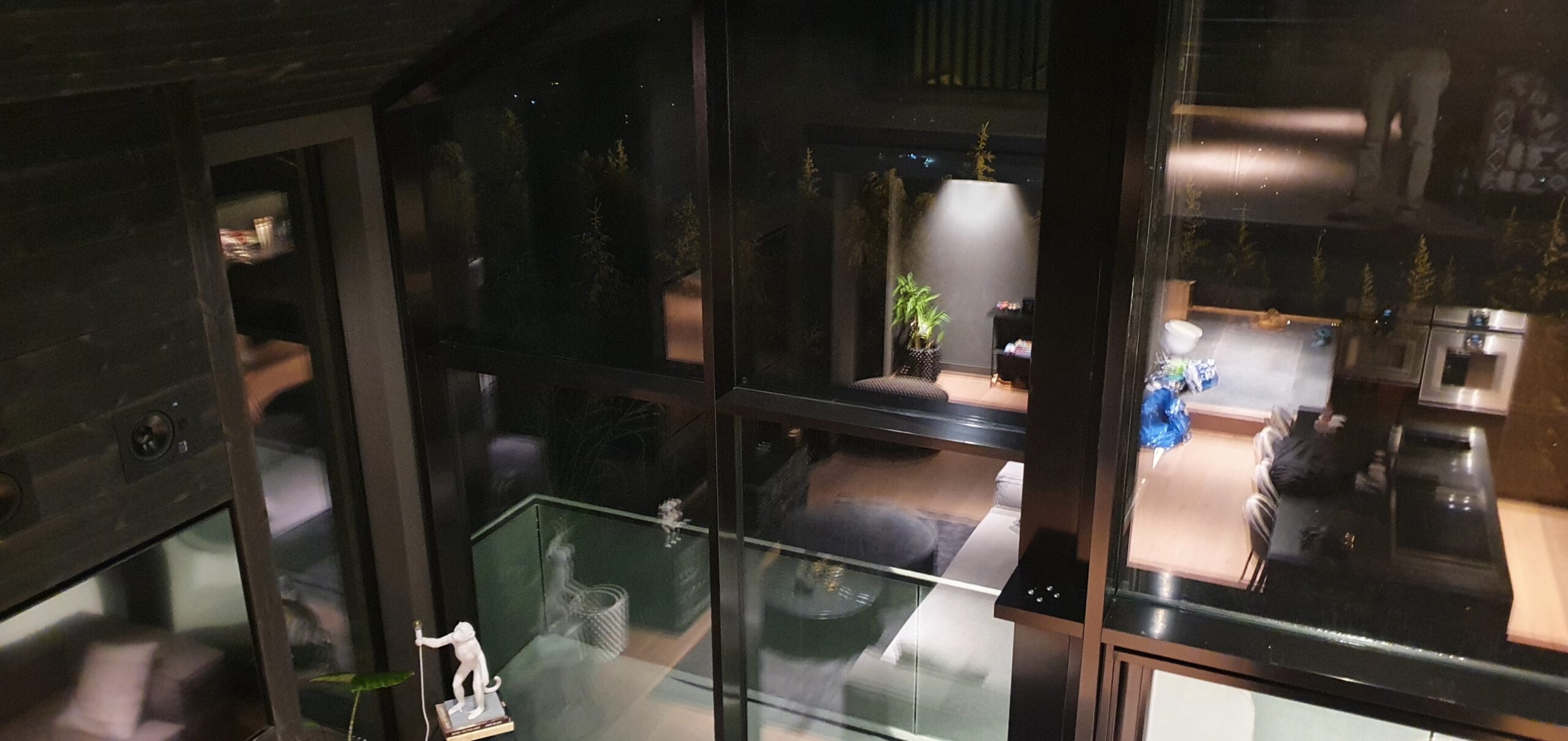 I denne hytten følger lyden deg fra rom til rom. Med et tradisjonelt stereoanlegg blir lyden lavere når du beveger deg bort fra det. Med dette multiromssystemet er lyden med deg overalt.- Veldig praktisk når man ser på TV og ikke vil gå glipp av hva som skjer i filmen mens man går på kjøkkenet for å noe og drikke.