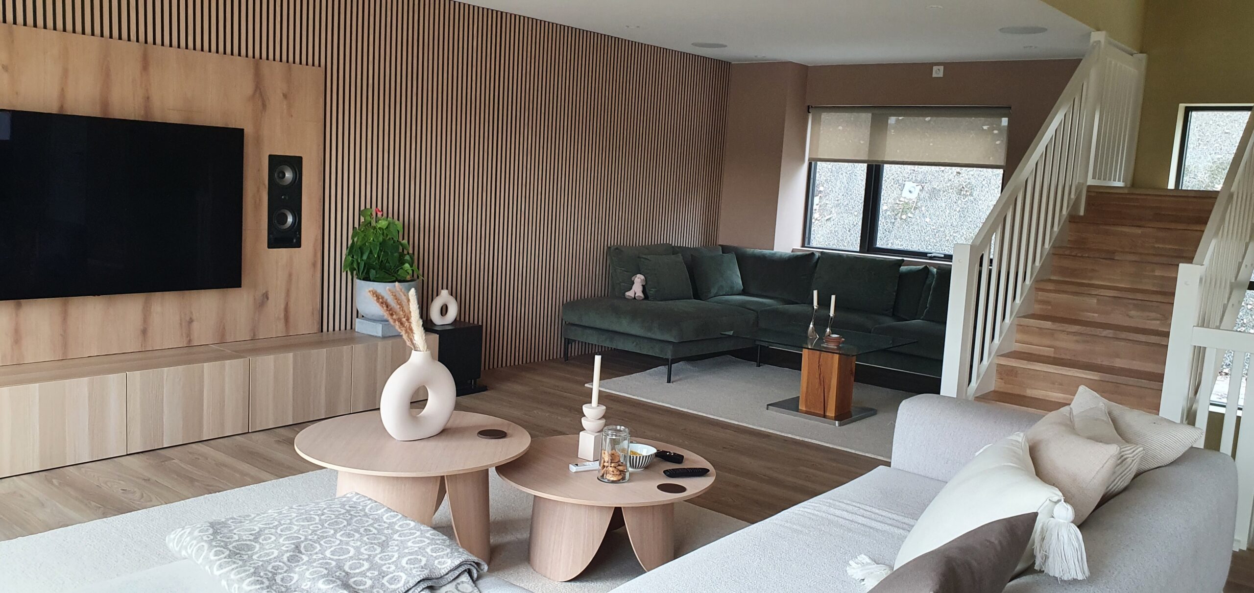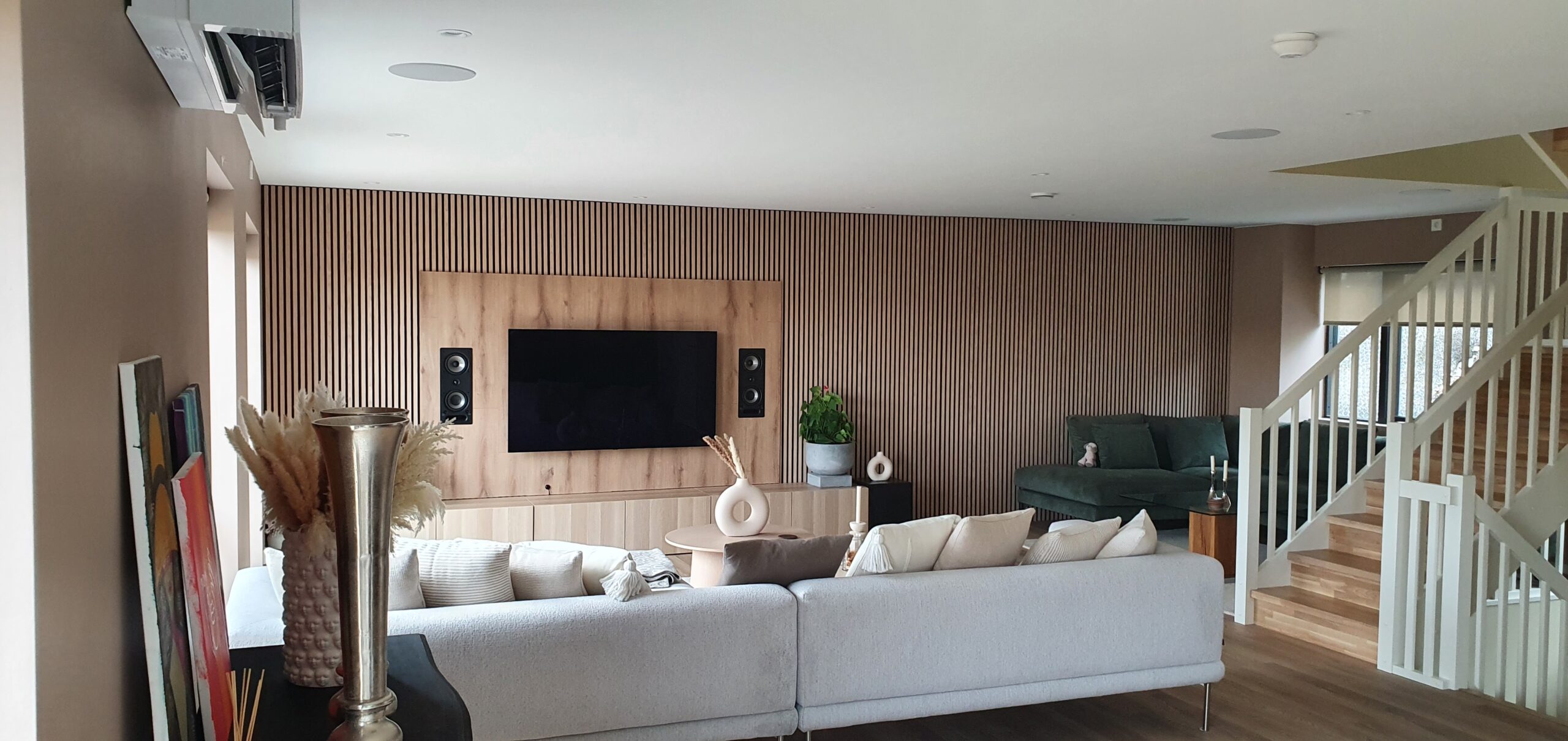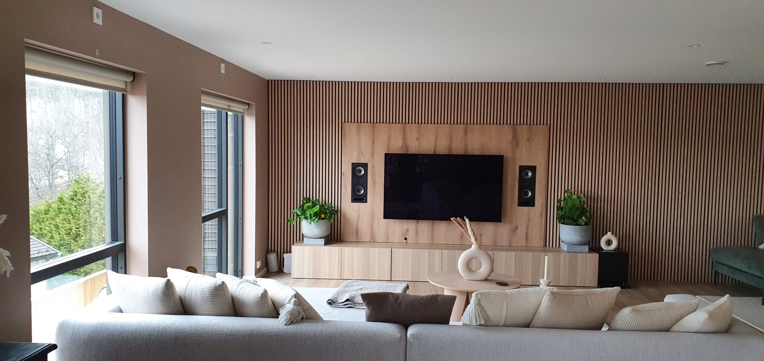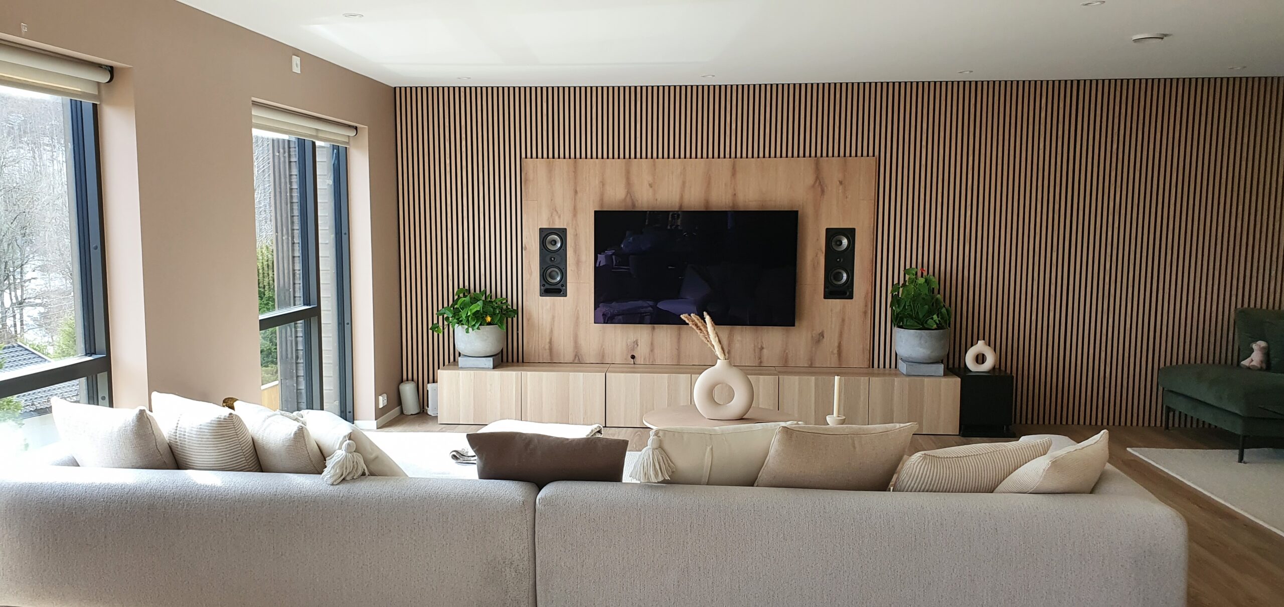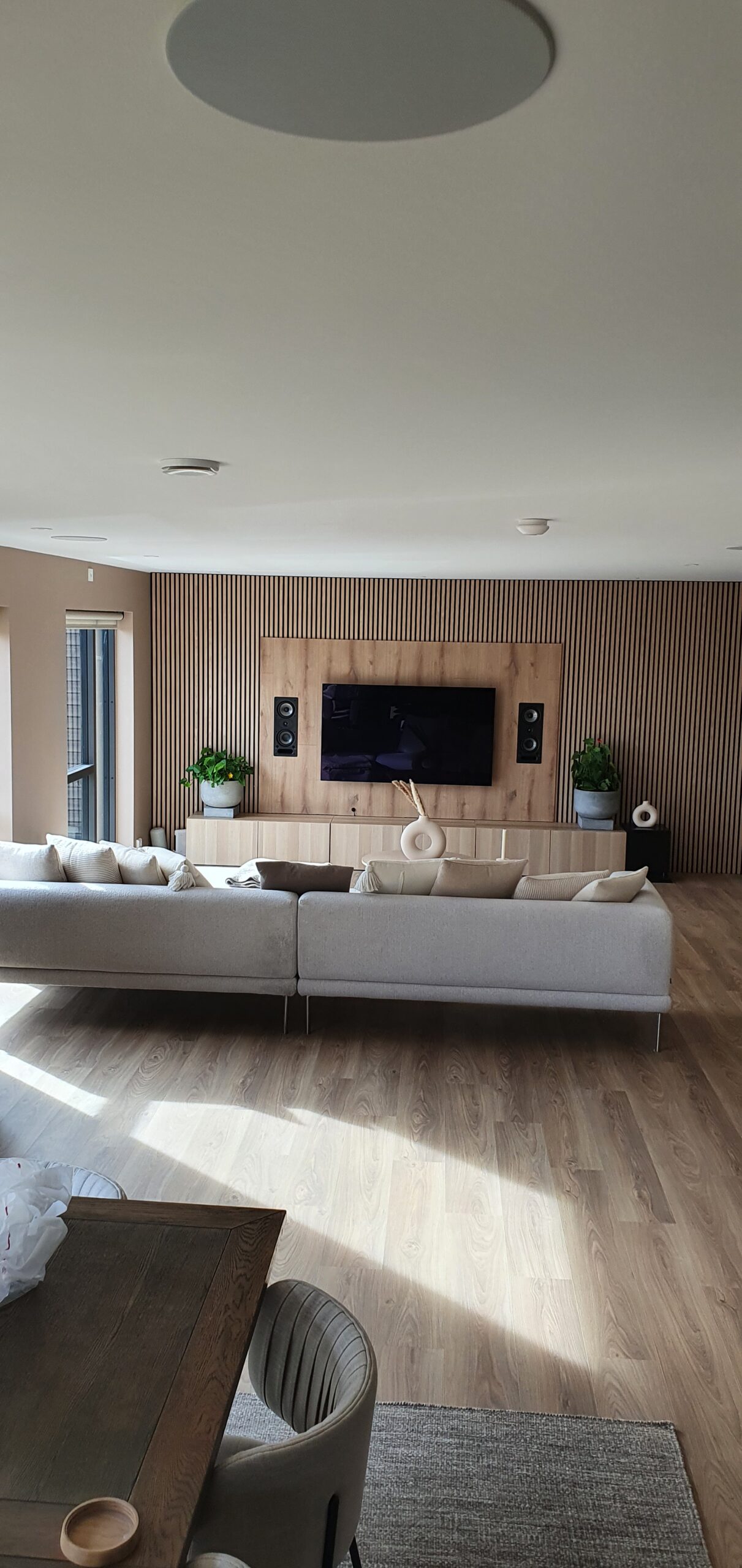 Diverse stue prosjekter"Forvandle stuen din til et multimediaparadis med integrert lyd! Opplev den fulle sanseeffekten av favorittfilmene og musikken din som aldri før. Med kraften til lyd vil stuen din bli hevet til neste nivå. Fordyp deg i rik og klar lyd som gir...