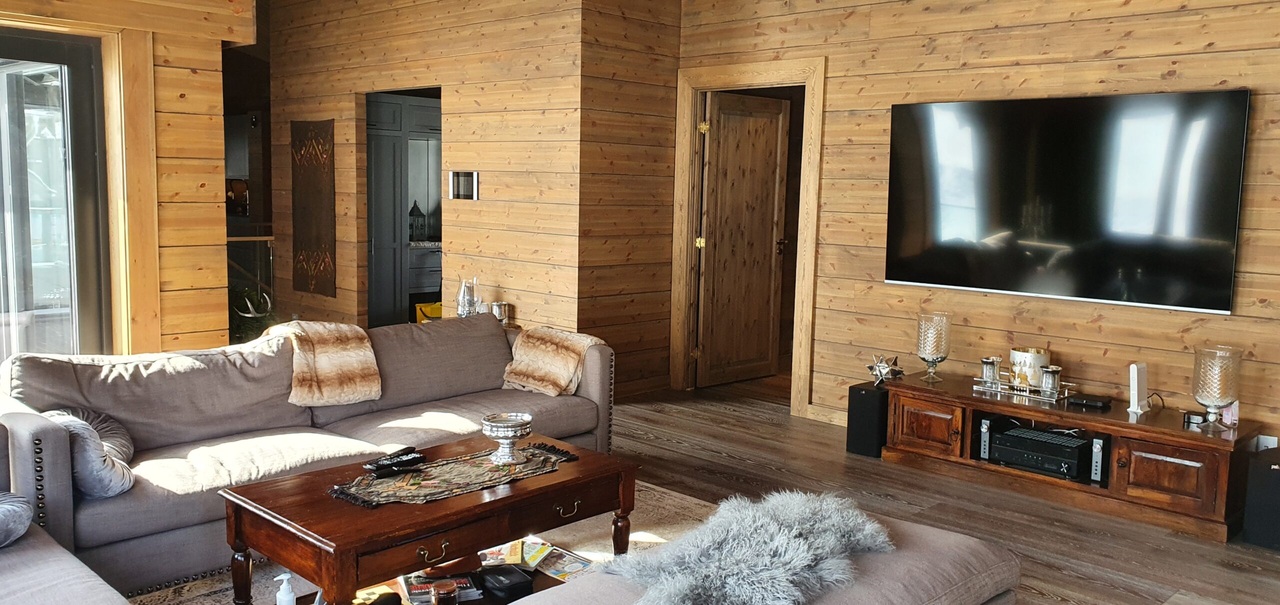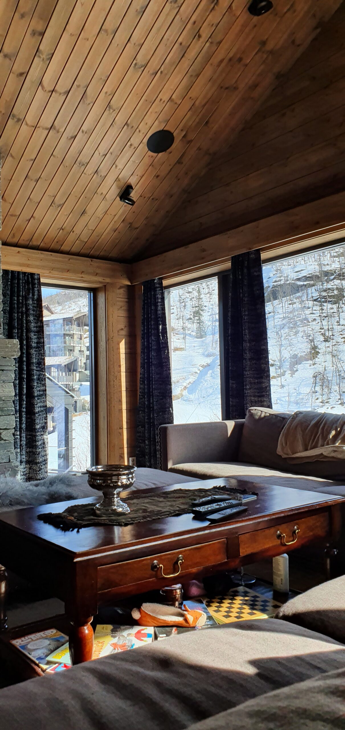 På denne hytta følger lyden deg fra rom til rom. Med et tradisjonelt stereoanlegg blir lyden lavere når du beveger deg bort fra det. Med dette «hifi» multiromssystemet er lyden med deg overalt.- Veldig praktisk når man ser på TV og ikke vil gå glipp av hva som skjer i filmen mens man går på kjøkkenet for å noe og drikke.