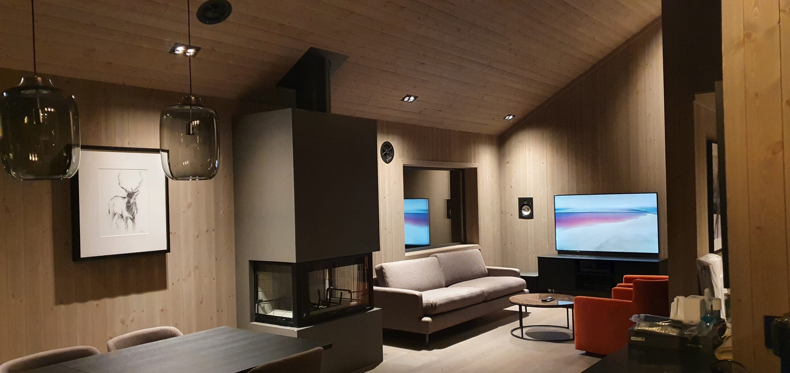 I denne hytten følger lyden deg fra rom til rom. Med et tradisjonelt stereoanlegg blir lyden lavere når du beveger deg bort fra det. Med dette multiromssystemet er lyden med deg overalt.- Veldig praktisk når man ser på TV og ikke vil gå glipp av hva som skjer i filmen mens man går på kjøkkenet for å noe og drikke.